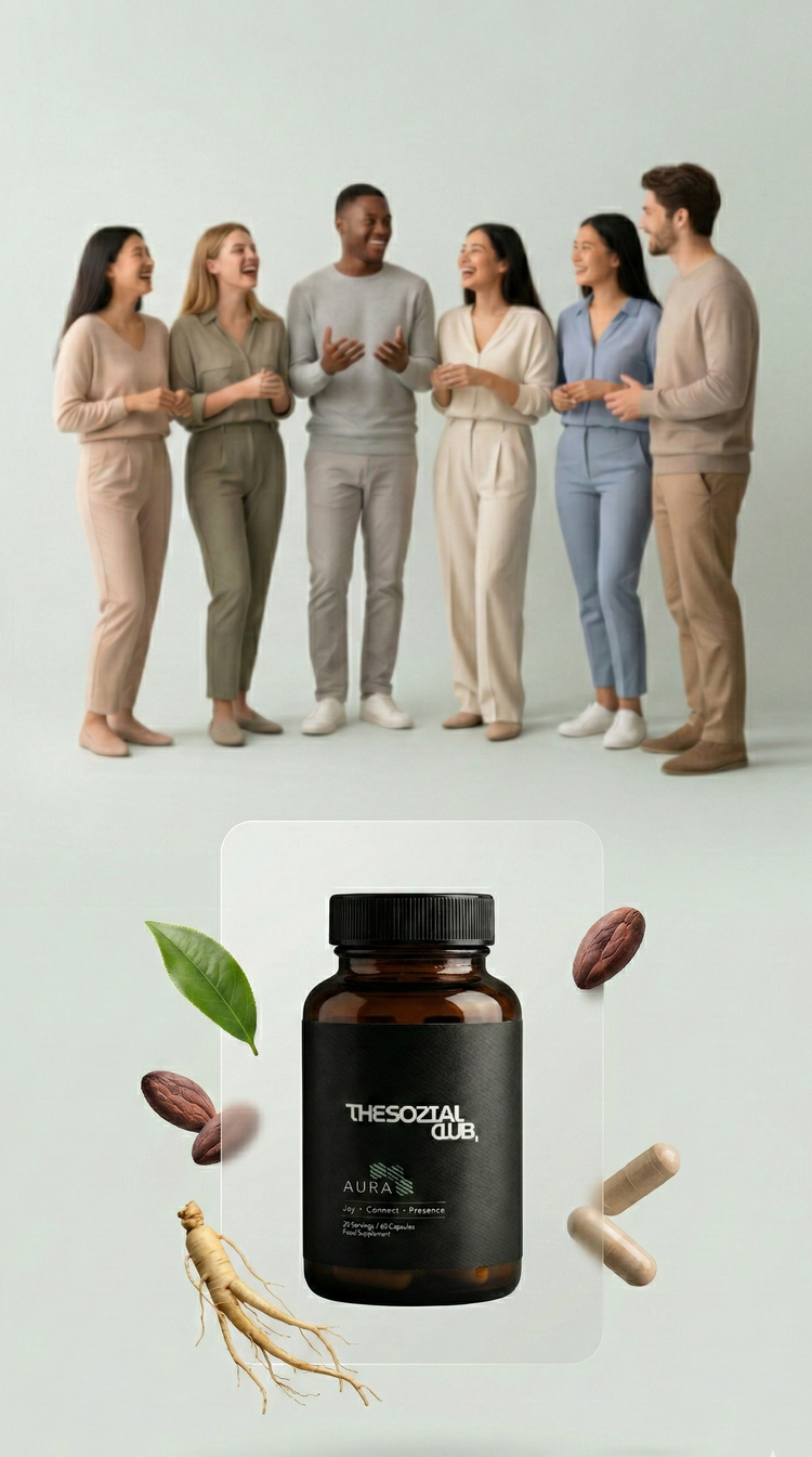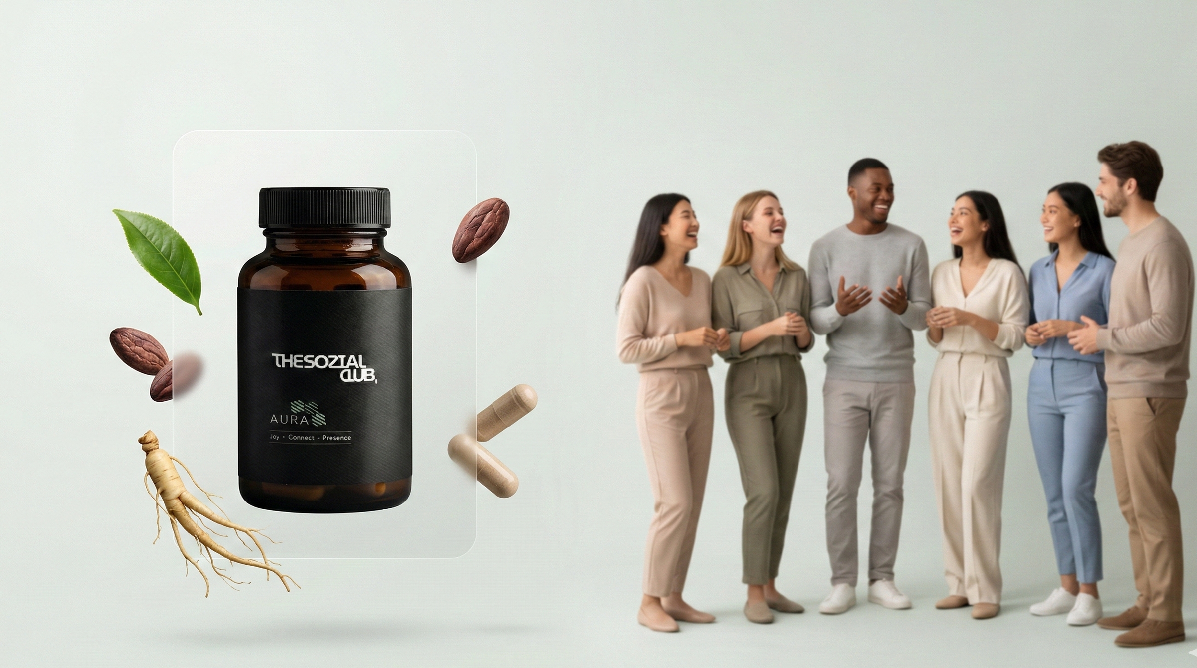 It’s designed to support social energy, confidence, focus, calm and a balanced mood helping you feel your best in social moments, naturally and consciously.